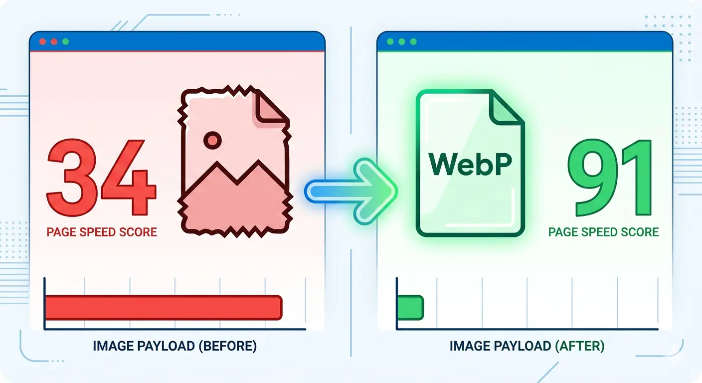 If your website is still serving JPEG or PNG images as the primary format, switching to WebP is the second most impactful single action available for faster image loading website performance.